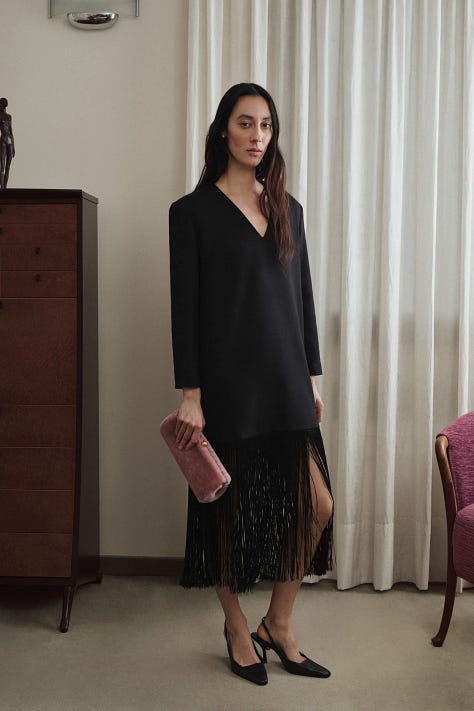 A fringe dress or skirt is one of my favourite items to layer with. Beaufille styled this perfectly below.