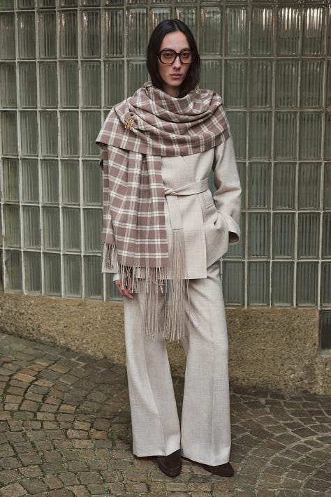 Solid fringe analysis! The Schiaparelli-to-scarf pipeline is real, especially after couture season. The layering point is key though, fringe gets dismissed as costume-y but when its treated as texture rather than statement it actually works. I picked up a vintage fringed vest last year that gets way more milage than expected precisely becaus of that versatility.